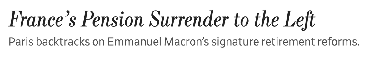 The @WSJopinion laments that Macron caves in on pension reform. The real blame, though, must go to the ECB, as they enable irresponsible fiscal policy by providing a backstop preventing market discipline.