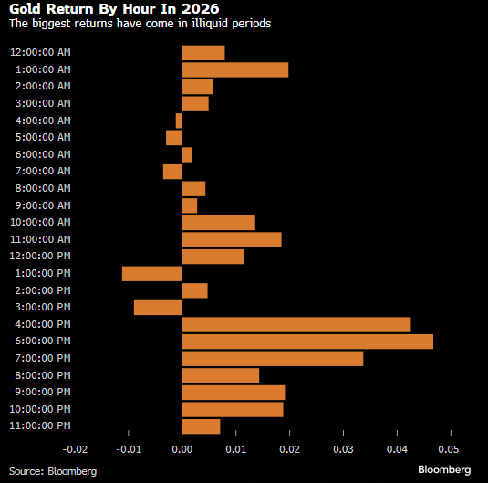 Bloomberg suggests the strongest buying has been during US market. The chart below shows this month's returns based on East Coast time.