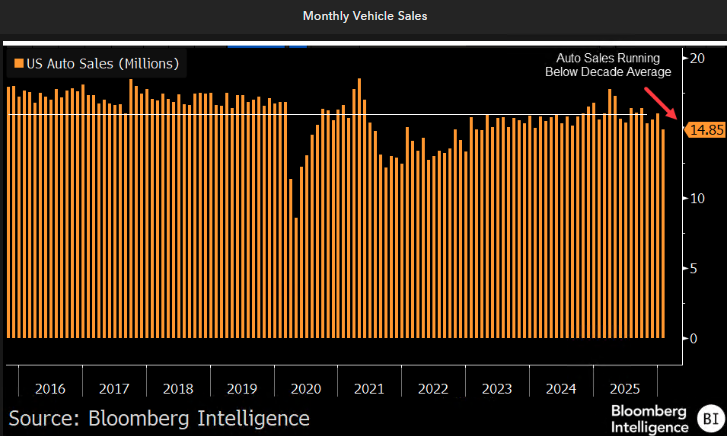 Car sales slowing, used car prices dropping, delinquency rates rising. 🚗